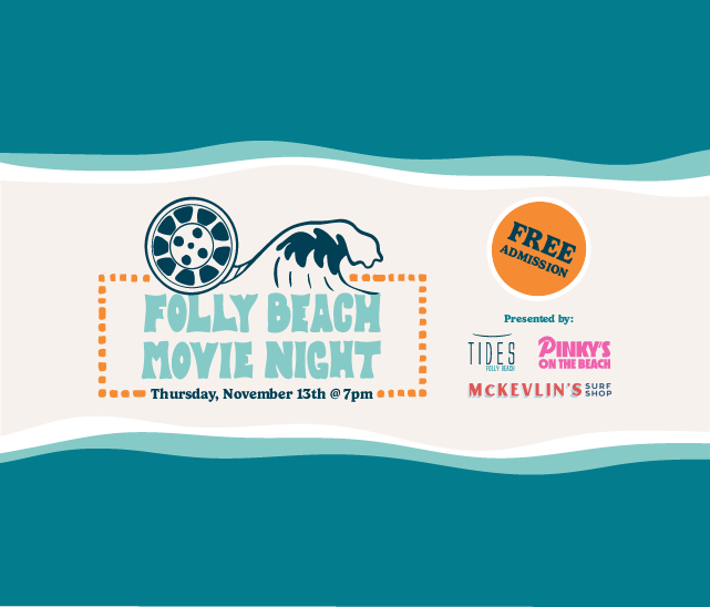 On Thursday, November 13th, the beach behind Tides Folly Beach transforms into an open-air theater for a night of surf films and seaside vibes. Presented by McKevlin’s Surf Shop & Tides Folly Beach, this free event celebrates local surf culture through the lens of incredible filmmakers.
